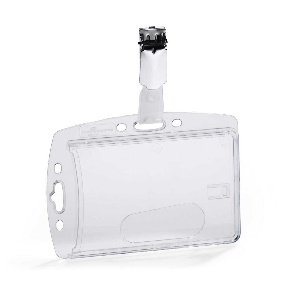 The enclosed ID card holder with clip is a reliable and professional solution for displaying identification or access cards in workplaces and events.
