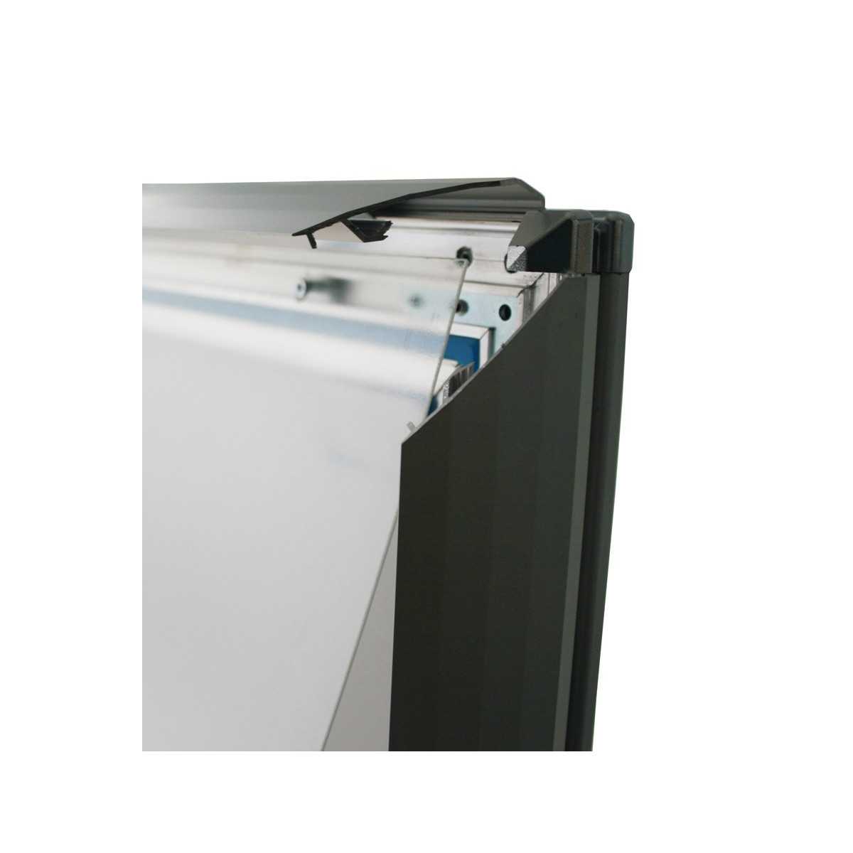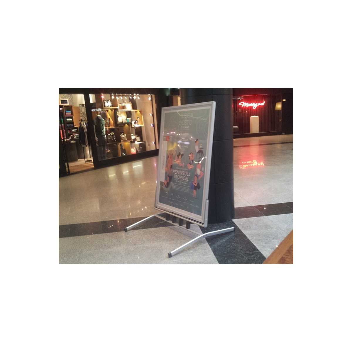 Static display stand (easel type), to support graphics on both sides. Round corner. Lightweight and economical solution made of plastic, for permanent graphics, very practical disassembly for a quick and simple...