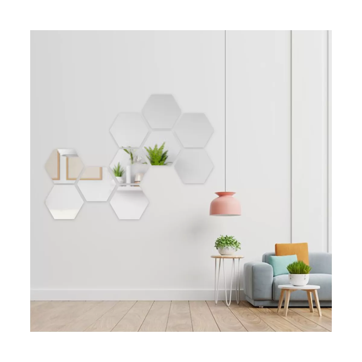 Set of 3 circles of 20cm. Pieces with double-sided adhesive for application on smooth surfaces. The mirror can enlarge rooms, increase brightness, and assist in decoration.