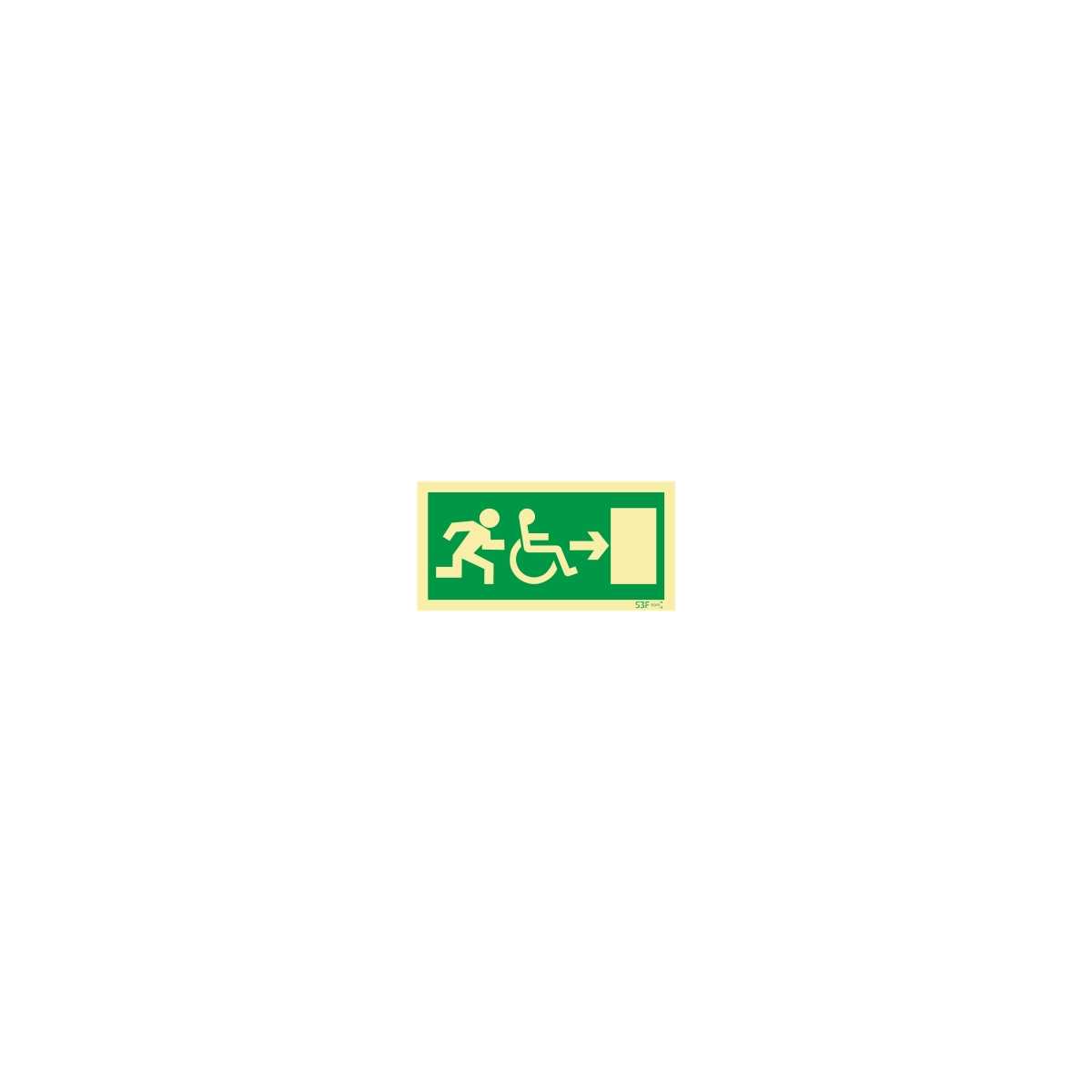 Exit sign to the right for people with disabilities or reduced mobilityIncludes bi-adhesive foam disc (2 cm), not applied to the sign to allow it to be fixed if desired
