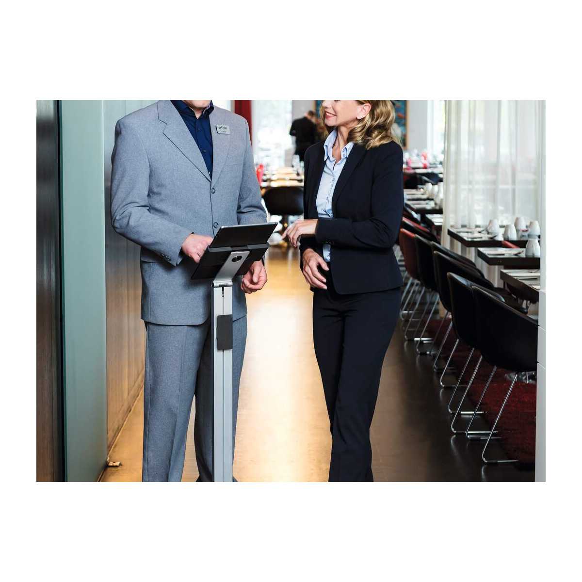 Ideal for trade shows, events, stores, receptions, offices, and commercial spaces, this tablet stand enhances functionality and user experience.