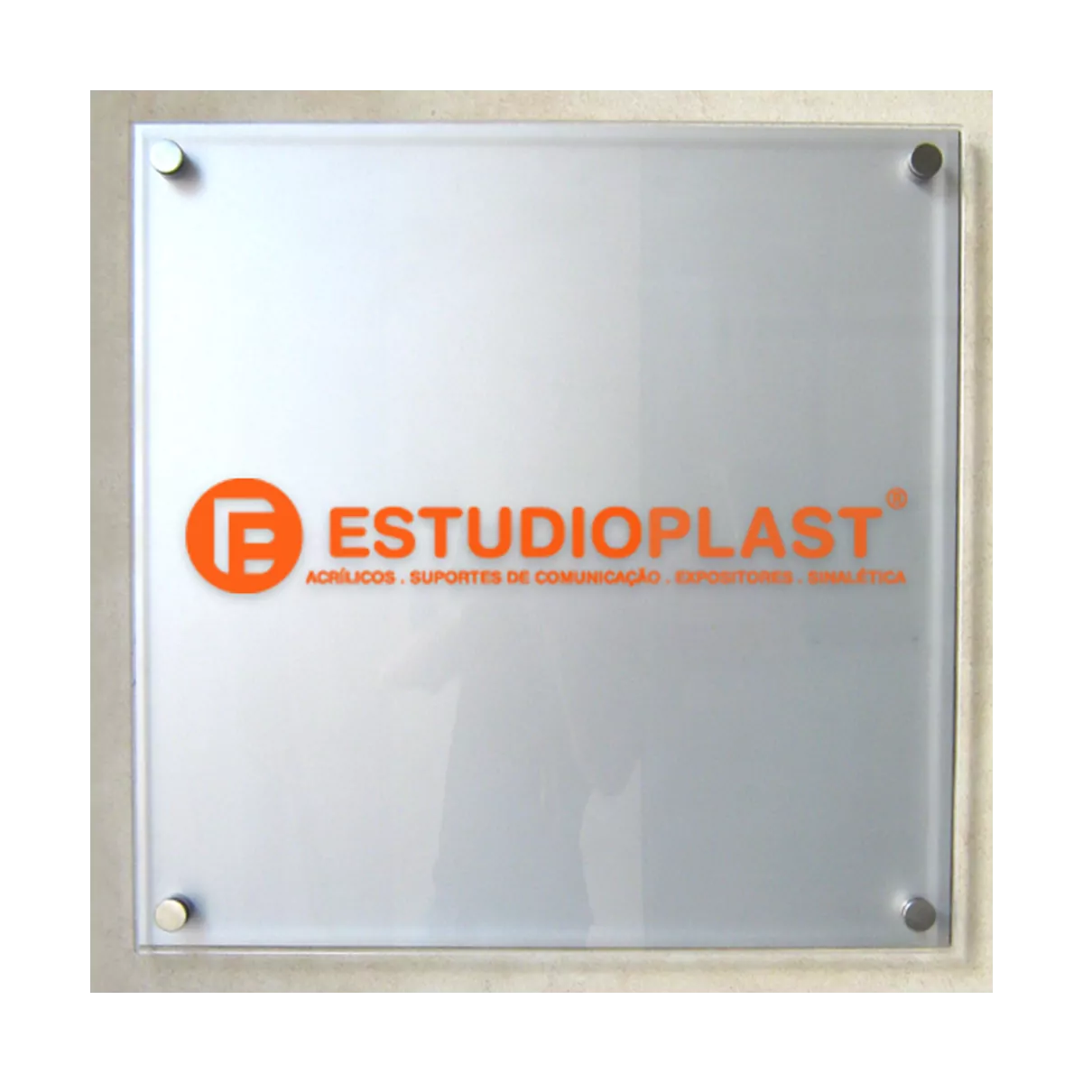 Placa de comunicação que pode personalizar com vinil. Placa de acrílico cristal c/ furação de 8mm. (afastadores vendidos separadamente)