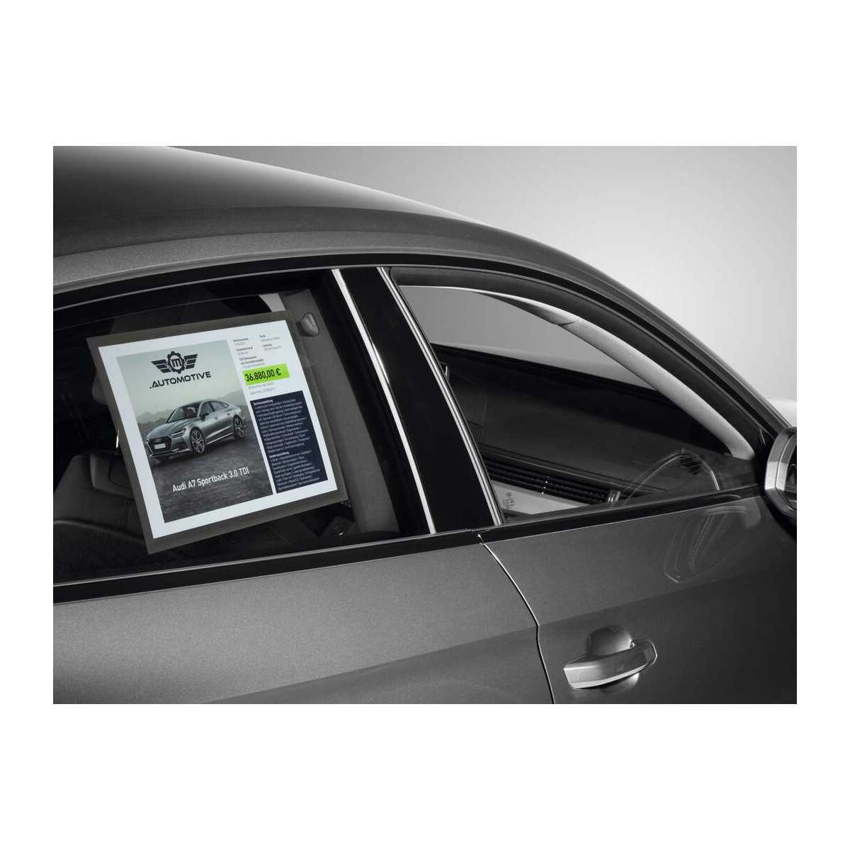 A solução de rotulagem ideal para vidros curvos. As bolsas de informação estaticamente adesivas são adequadas para fixar ofertas a montras de automóveis, montras de lojas e balcões de venda. Permite a afixação de documentos até A4 em superfícies de vidro lisas bem como curvas.