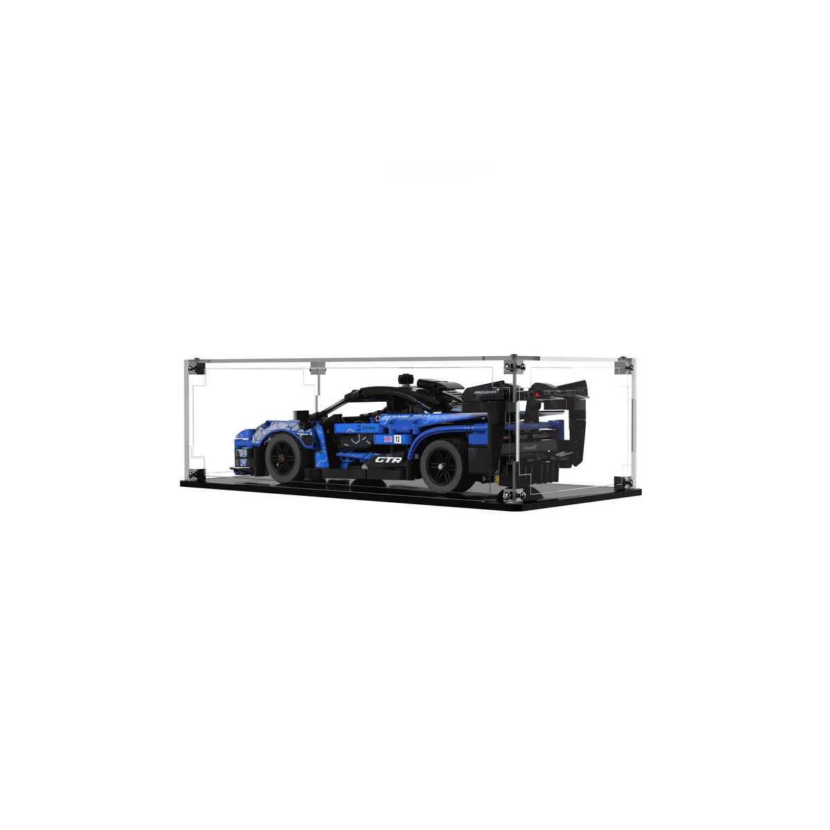 Esta vitrine cuidadosamente projetada é perfeita para o seu LEGO® Technic McLaren Senna GTR™ 42123 Medindo 44 cm de largura, 15 cm de altura e 22 cm de profundidade, as dimensões da vitrine garantem um ajuste perfeito para todas as 1077 peças deste conjunto LEGO® Technics.