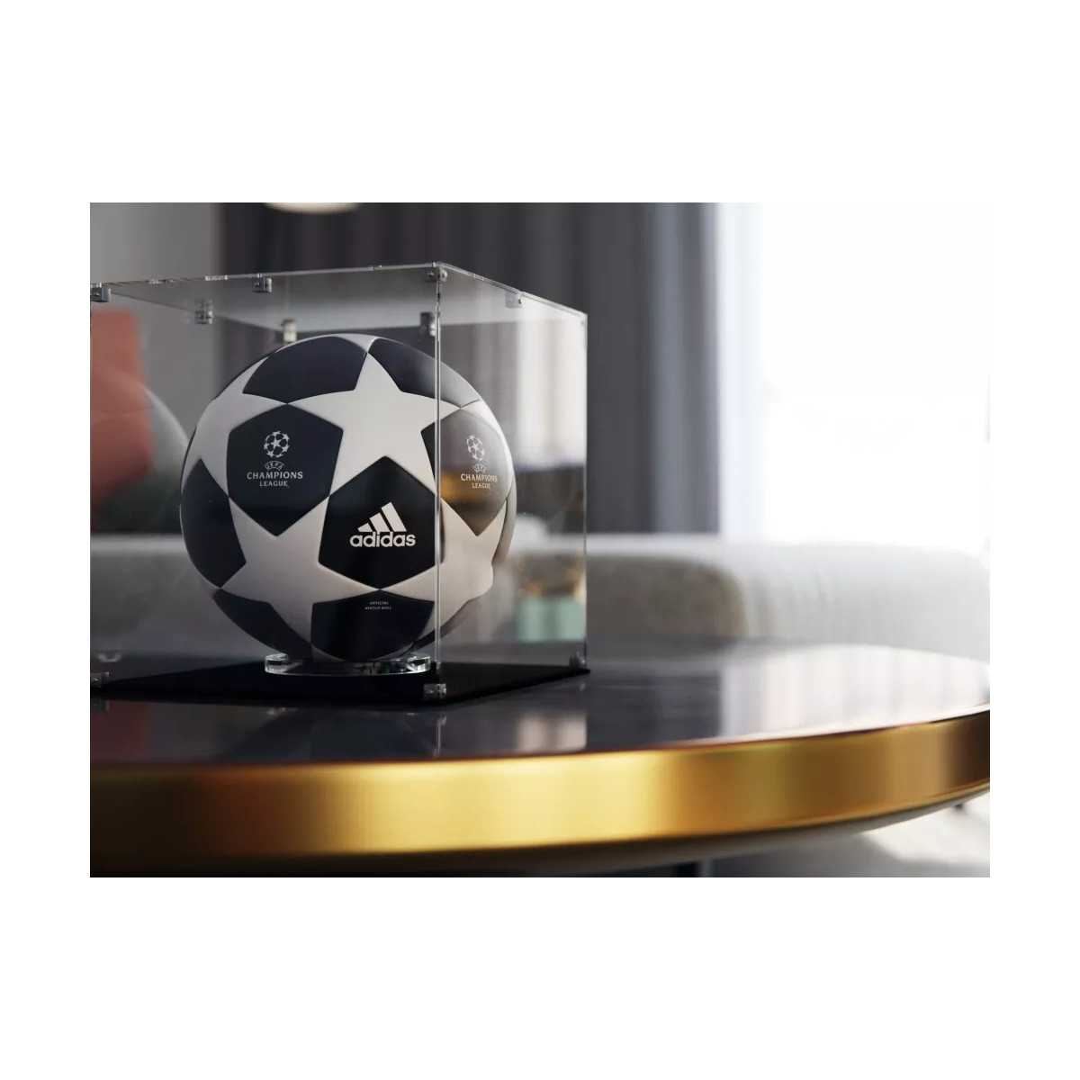 Caixa em acrilico cristal 30*30 cm com uma base de PVC 10 mm preto , com base para bola