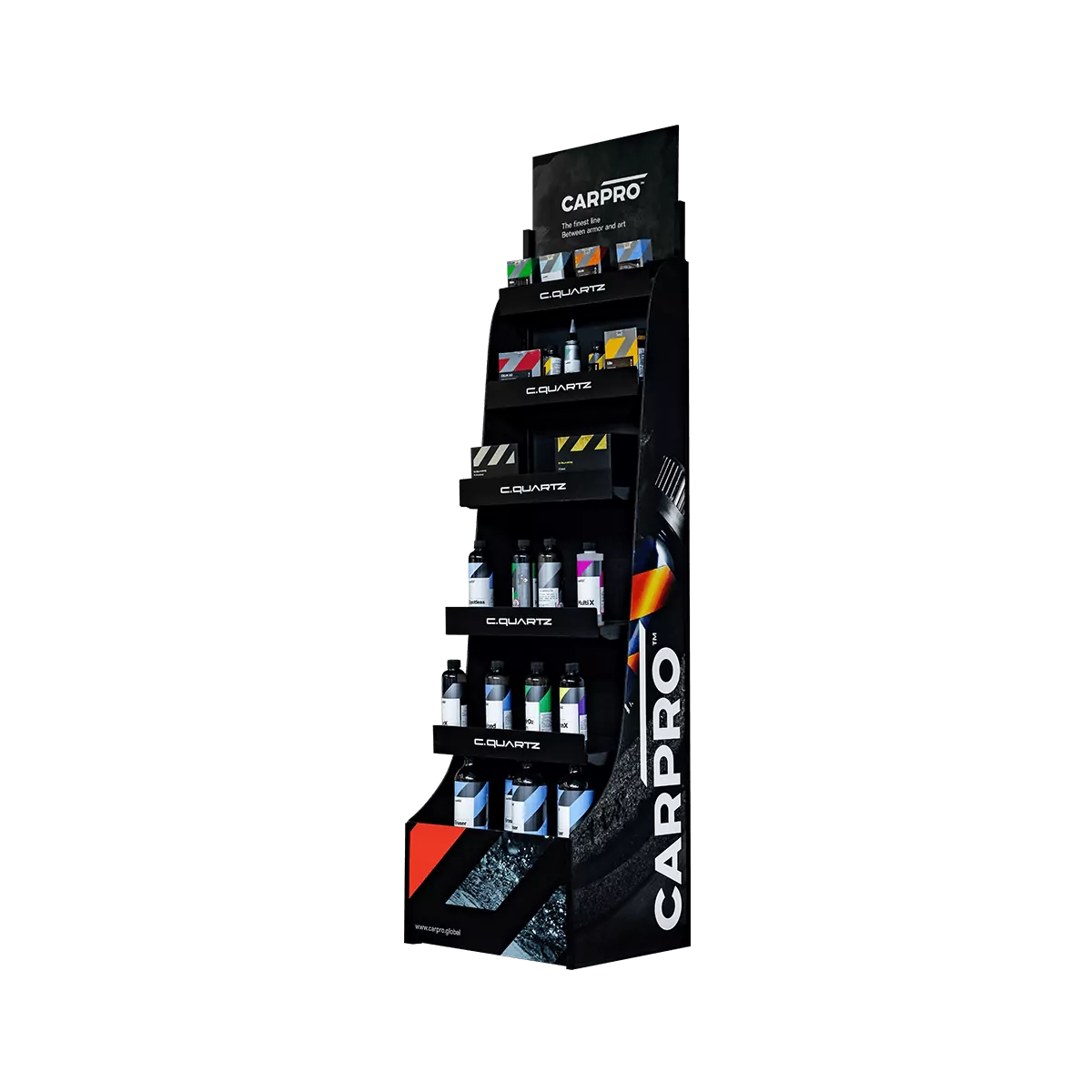 Expositor de chão em cartão duplo com 3 prateleiras e layout personalizado. Montagem: por encaixe e/ou cola Expositor: 30(c) x 50(l) x 100cm(a) Prateleiras: 30(c) x 20(l) x 23cm(a)OBS: Compra Mínima de 3 unidades